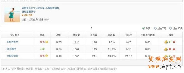 寶貝買家反饋,指的是用戶對(duì)標(biāo)簽下寶貝的行為反饋,包含了瀏覽、收藏、加購物車、購買、分享、評(píng)價(jià)等一系列買家行為。賣家打給寶貝打上標(biāo)簽之后,可以通過標(biāo)簽后臺(tái)來查看寶貝標(biāo)簽的效果數(shù)據(jù)(見下圖)。在寶貝標(biāo)簽后臺(tái),您可以查看店鋪內(nèi)所有打標(biāo)寶貝的相關(guān)數(shù)據(jù):展現(xiàn)量、點(diǎn)擊量、點(diǎn)擊率、引導(dǎo)成交金額等,如果有對(duì)寶貝標(biāo)簽出價(jià),也能看到明細(xì)的消耗費(fèi)用。這些數(shù)據(jù)可以幫助賣家評(píng)估寶貝標(biāo)簽給寶貝帶來的流量和效果,以幫助賣家更好打標(biāo)。