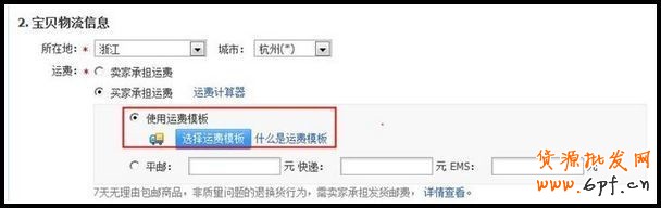 4) 回到商品編輯頁面-“寶貝物流信息”-“選擇運費模板”-“應(yīng)用模板”,模板設(shè)置完成。