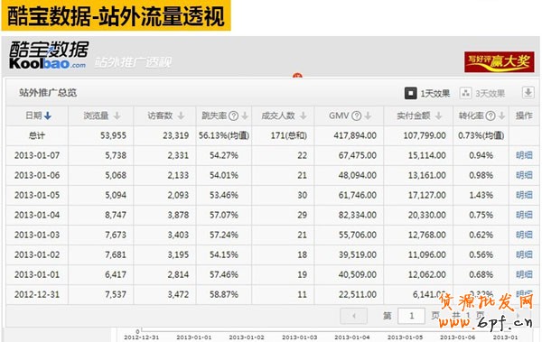 3、酷寶數據:利用這個工具,我們可以查看得到站外的一些來源數據及成交轉化數據。想查看站外的哪個網站流量及成交給力,就用這個工具來分析分析了。