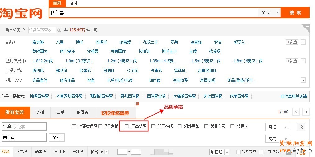 2. 淘寶首頁(yè)搜索篩選框中輸入男裝或床上用品/布藝軟飾相關(guān)商品關(guān)鍵詞搜索時(shí),也可以選擇“品質(zhì)承諾”服務(wù),預(yù)計(jì)在雙12之后上線