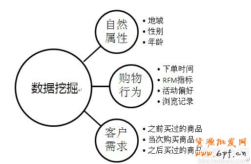 首先找到所有購(gòu)買過類似商品的客戶,尤其是這些商品上新后第一周購(gòu)買的客戶,通過數(shù)據(jù)挖掘這些客戶的自然屬性(地域、性別、年齡等),購(gòu)物行為(下單時(shí)間,RFM指標(biāo)、活動(dòng)偏好、瀏覽記錄等),客戶需求(購(gòu)買的商品)等。如下圖。
