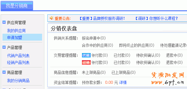 然后,供應(yīng)商那邊就會(huì)看到你的申請信息,一般3-5個(gè)工作日之內(nèi)供應(yīng)商就會(huì)審核完畢,如果審核失敗,那么再選擇其他的供應(yīng)商吧,如果審核通過,你就可以代理他們的品牌產(chǎn)品。審核通過后,你就可以進(jìn)去自己的分銷商后臺(tái),查看相關(guān)的供應(yīng)商品信息了,并對后臺(tái)進(jìn)行管理。
