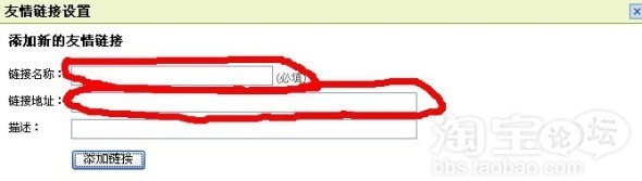 第四步:設置友情鏈接點編輯。會彈出一個對話框形式文本。鏈接名稱就寫你網店的店名例:茶話會,地址就寫你網店的網址然后點添加鏈接。