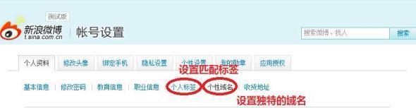 下面有一個標簽,他的目的是希望別人能夠更加方便的加到我們,那么這個時候個人標簽,你就可以去設置自己的主營寶貝,還有購物,淘寶等,都是你首選的標簽,不過,只有10個標簽額,就像淘寶的關鍵詞匹配一樣,你的關鍵詞越精準,排名越靠前。被博友搜到的可能性就越大!附帶的還有你的個性域名也可以設置,這個就如同淘寶的二級域名,一定要設置跟你的淘寶店鋪地址一樣的。后期會節省很多功夫。