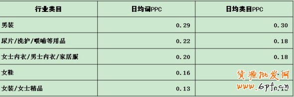 附服飾行業(yè)PPC表: