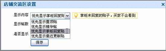 第二步、出現淘寶店鋪交流區設置,里面有三項:
