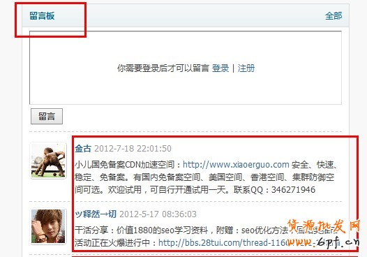 一個論壇的的個人空間之中,很容易就成為一個外鏈的平臺,比如說上圖中的28推個人論壇,就已經(jīng)成為了留言的朋友最方便的外鏈途徑了,只要進去了一個會員的空間之后,直接留言自己推廣的業(yè)務,你會看到不需要審核,就直接留言了,不僅 提高了外鏈,而得到了曝光,一舉兩得,這一種方式,貴在于巧用,一個業(yè)務只有經(jīng)過多次的推廣,才能有效果,本來就是有道理的。