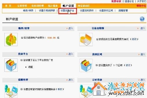 如果您想要取消淘寶直通車在雅虎平臺投放,您可以點擊“賬戶設置”,再點擊“設置投放平臺”。