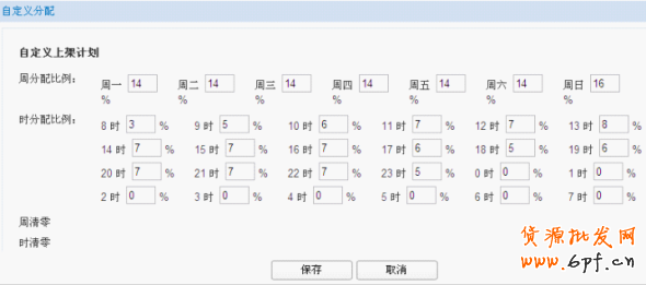 6.或者也可以選擇“自定義分配”,按照寶貝占比來設(shè)置上架時間。如下圖:
