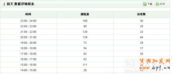 首先,按小時流量分析部分,提供了數據的詳細報表。詳細報表提供了每一個時段的具體瀏覽量和訪客數。