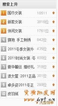 這時(shí)候我們要做的工作應(yīng)該轉(zhuǎn)變?yōu)槭占?ldquo;寶貝屬性”中沒(méi)有的熱門關(guān)鍵詞和尋找長(zhǎng)尾關(guān)鍵詞中適合的部分關(guān)鍵詞了。關(guān)于關(guān)鍵詞的搜索,大家可以從淘寶首頁(yè)搜索欄輸入的關(guān)鍵詞之后給的長(zhǎng)尾關(guān)鍵詞中收集,還有一個(gè)地方可以得到很多熱門的關(guān)鍵詞,這個(gè)地方就是“淘寶網(wǎng)排行榜”(地址:top.taobao.com)。這里面有各個(gè)行業(yè)的關(guān)鍵詞的排行情況,有“搜索上升排行榜”和“搜索熱門排行榜”,點(diǎn)擊“完整榜單”,進(jìn)去里面還可以發(fā)現(xiàn)這里還含有很多關(guān)鍵詞,足足達(dá)到十幾頁(yè),這塊好資源,一定要好好利用,盡量挑選出“寶貝屬性”中沒(méi)有的關(guān)鍵詞,一般是挑選風(fēng)格詞居多,畢竟“寶貝屬性”的“風(fēng)格”中給出的有限,像:復(fù)古、俏皮、簡(jiǎn)約、學(xué)院..同時(shí)也可以收集一下,一個(gè)詞多種說(shuō)法的關(guān)鍵詞,如:襯衫(襯衣)、短款(短裝).