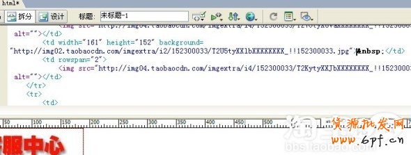 5個切片都更換完成后,再單擊這里。DW代碼區相應的地址會藍底顯示,此時再單擊藍底代碼前的<td>