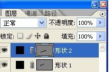 友情提醒:繪制直線時,按住【shift】鍵時,直線會按照固定的方面走;繪制第二條線前,您也按住【shift】的話,兩條線就繪制在了同一個圖層上,如下圖:(兩個黑線代表兩條直線在同一個圖層蒙版上);否則會形成兩個圖層,如下圖: