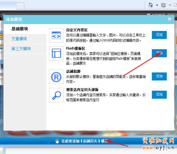 本人采用的是falsh模板制作的,步驟和上方添加通欄自定義內容差不多,只不過選擇添加“Flash模板區”就行了