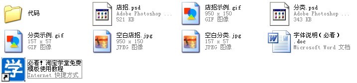 2、PSD文件和字體說明文件,包括店招PSD和寶貝分類PSD,方便有PS基礎的同學按自己的需要修改文字和效果 ,通過字體說明可以了解PSD文件使用的各種字體,如果你沒有這些字體,又想有那樣的效果,就得去網上下載安裝相應的字體;