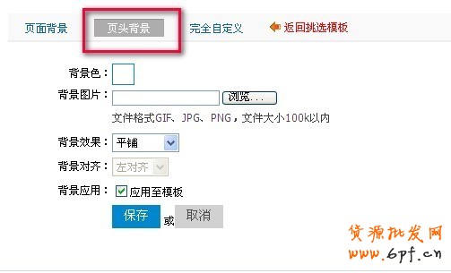如需設置店招的背景,請點擊模板,進入之后點擊背景設置,選擇頁頭背景,上傳您需要的背景圖即可,如下圖所示:
