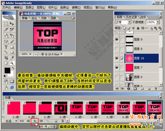 上面我們知識講解了一個女裝店動態網店店標的編排。相信親們能舉一反三,學會了方法靈活運用到各種動態網店店標中。如果你學習比較吃力,那么可以多在我們淘寶學堂網的拍照作圖和網店裝修欄目里多學習學習PS和裝修技巧,這樣以后在看教程時候就容易多了。