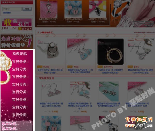 淘寶旺鋪寶貝分類完美整體設計。不知道大家看到過沒有,有些漂亮的店鋪,首頁左側分類區是很完整的圖形哦,中間沒有任何分割空白。用管理后臺的填加分類然后換成圖片這種傳統方法是完全做不到的,那么他們是怎么做的呢?先看看我所說的效果: