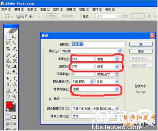 如圖“紅圈”所示。高度和寬度可自行設(shè)置適當(dāng)?shù)臄?shù)據(jù)(如500*400)最重要的是背景內(nèi)容一定要設(shè)為“透明”。設(shè)置完之后點擊“好”。