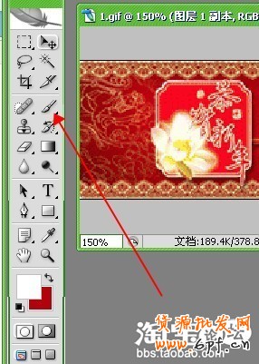 見證奇跡的時刻到了,點(diǎn)擊PS工具欄最下層的按鈕,進(jìn)入ImageReady編輯,點(diǎn)擊動畫欄復(fù)制幀按鈕