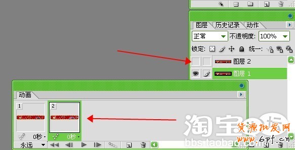 在第二幀圖像中,點(diǎn)選圖層2左邊的眼睛圖標(biāo),去除圖層2的顯示