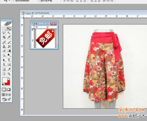 7選擇拖移動工具(工具欄最右上方,上圖工具欄點下去的那個位置),按動鼠標,把水印圖拖到主圖上來。