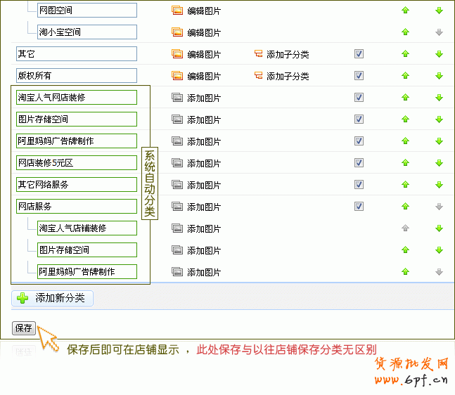 保存以后,頁(yè)面會(huì)自動(dòng)跳轉(zhuǎn)到店鋪分類頁(yè)面,而且剛剛保存的,會(huì)自動(dòng)添加到原有分類的最下面!
