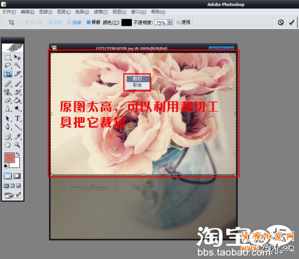 打開PS,調開原圖。原圖太高了所以裁掉一些: