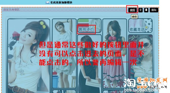 但是通常那些諸如“收藏本店”的按鈕,是沒有指向的鏈接的,所以要再編輯一邊把鏈接放進去: