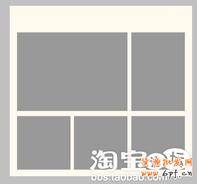 上面5個步驟我們講的是制做框架,其實促銷內容的制作與上面步驟相似,只是色塊換成了需要的素材。如果您需要此課程的素材可以與我的旺旺聯系。下面我們以其中某一個促銷內容(如圖)為例進行講解。下面的圖片與我們剛做的灰色色塊大小一致,做好后直接覆蓋灰色色塊。 (有的朋友有可能會問,直接做這個塊不是更簡單嗎,其實不然,灰色塊除了用來定位,還用來體現我們的大概思路,讓做圖有的放矢)