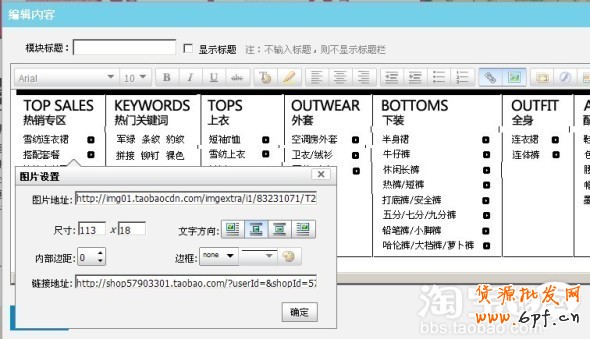 打開淘寶后臺,新建一個自定義模塊,切換到代碼編輯模式,將代碼復制進去。