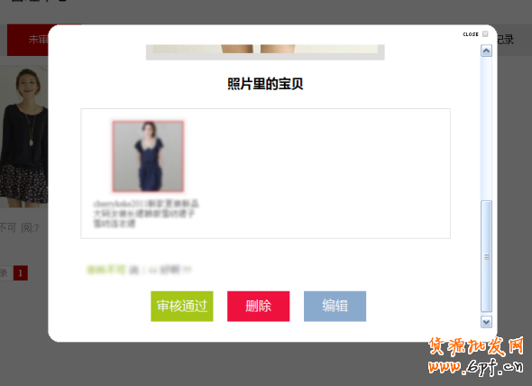 在后臺點擊查看分享的內容時,下方會有“編輯”按鈕(如前面一張圖),點擊進去之后就可以對內容進行編輯了,你可以刪除或者上傳新的圖片,可以變更關聯的寶貝(這個時候由于你擁有管理權限,因此你可以關聯店內的任何寶貝),可以重寫描述等等。
