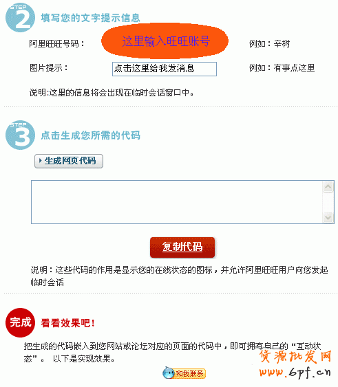 到淘寶官方在線生成工具頁面:http://www.taobao.com/wangwang/tese/index.php