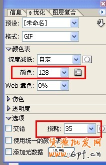 在右上角的優化窗口設置圖片顏色和損耗。顏色可以在128、256之間選擇,損耗建議在1-40內。