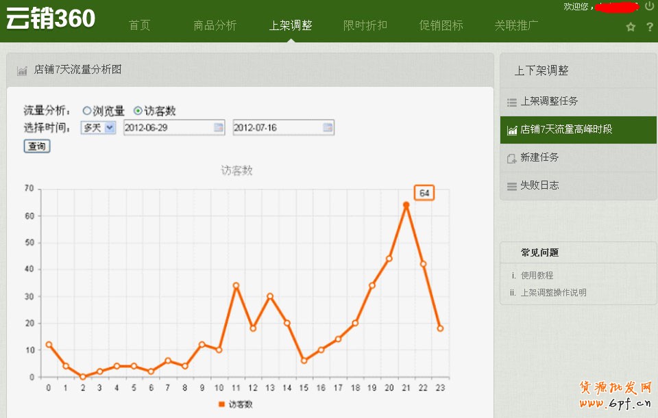 但是,這三個時間僅僅是整個淘寶的流量高峰時段,并不能代表具體店鋪的情況。其實每一個店鋪都有自己的一個流量高峰期,而這些時間段才是上下架的好時機