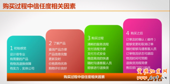 為了搞明白何使顧客產生信任,繼續往下購物行為,我們再看下面“購物過程中信任度相關因素”: