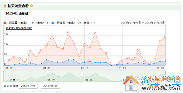2012-1-7日正式開張,下圖是1月份整個月的按天流量走勢圖!