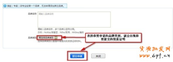 步驟三:填寫好“品牌名稱”、選擇好“品牌類別”,根據下方提示查看需要準備的相關資質。
