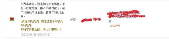 第三,遇到中差評(píng)怎么辦。我也遇到過中評(píng),甚至還有過一個(gè)差評(píng)。我不相信那個(gè)100%好評(píng)的賣家從來沒挨過中差評(píng)。但是不要慌,先從自身找問題。正常的買家給你中差評(píng)一定是有理由的。我遇到的差評(píng)是,去年春節(jié)期間,男朋友買給女朋友一件皮衣做禮物。但是恰好當(dāng)天到貨的時(shí)候吵架了,于是男孩把氣撒到了我身上給了個(gè)差評(píng)。和男孩根本無法溝通,我只能找到他的女友,結(jié)果一切如初。(收貨電話是女孩的)