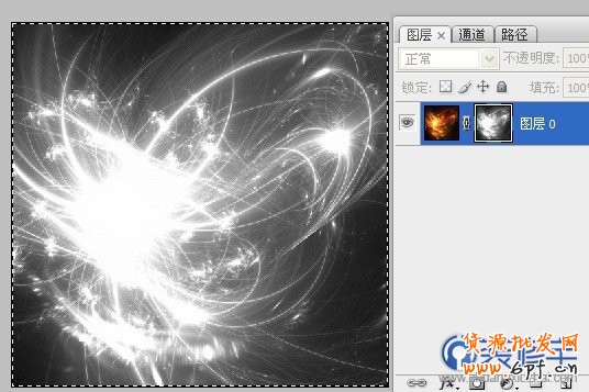 然后在ctrl+v(上面我們Ctrl+V復制過圖層的),把剛才我們復制的圖層粘貼到圖層蒙版中:現在可以看到,圖層蒙版中有了一個和圖層一樣的圖層