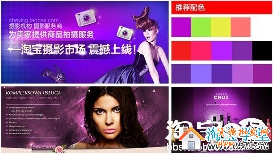 棕色和金色黑色搭配,會有高貴、經典的沉淀感。這種配色方法,我們經??梢栽诟鞣N奢侈品站點和VIP平臺上看到;棕色和白色會讓人感覺更沉穩莊重一些,產生相對舒適柔軟的感覺;而淡棕色和黃色、橙色搭配,會有比較生活化,也會有高端大牌的感覺。后面這兩種配色方式,適用于做家紡、家居搭配的賣家。