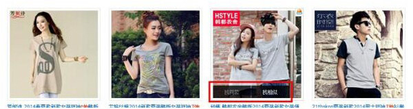 當我們搜索一個關鍵詞“T恤”時,鼠標放某款商品圖片上,會出現這樣的畫面