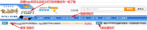 店招做好后,整個頁頭效果就出來了,發布出來看看效果哦,下面我將人店鋪的頁頭效果展示給大家看看。