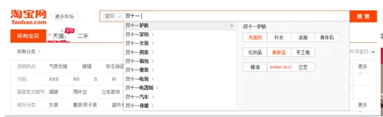 在淘寶搜索框輸入 "雙十一" 或者 "1111",就可以從下拉框和"你是不是想找"中獲得更多雙十一相關的直通車關鍵詞。