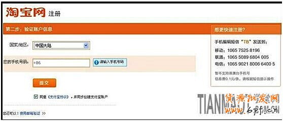 1、正常的進行淘寶賬戶的注冊,然后進入到要填寫手機的頁面時,點擊下面的“使用郵箱驗證”