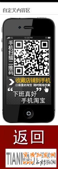 自定義區域:自定義區域可添加手機店鋪及收藏店鋪(格式為:收藏XXX:增加品牌曝光量)或者返回首頁丶頂部都可以,目的是讓流量在店鋪形成一個閉環,盡量轉化。