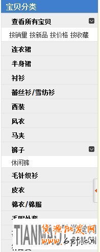 寶貝分類區:此區域按店鋪經營類目,或者產品名稱抑或特色進行歸類展示,這在店鋪裝修中都可以設置,重點是歸類,在這其中也可插入郵費補差等輔助類別,方便尋找。