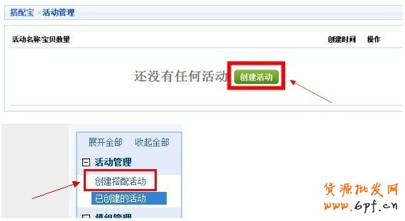 2、點擊馬上【創建活動】按鈕,或左側【創建搭配活動】,如下圖