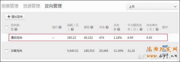 9、很多人老是看到通投,那通投是什么呢,就是資源位流量過剩而我們的計劃消耗不足時對全網人群的投放,也就是那個底價7元或1元等的投放,可以說是垃圾流量 ,點擊率低,轉化基本沒有,我們要的是精準流量。通投是在計劃管理>推廣單元管理>定向管理里面的通投定向這一行查看的,若此行有數據表明出現了通投,可點后面的報表查看通投的具體情況。