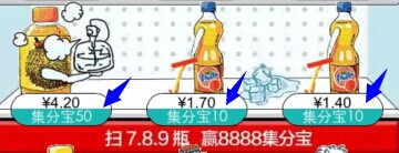 說明:2014年11月20-24日,登錄手機淘寶App>菜單>發現>找到“掃一掃,搶優惠”(注意,是飲料瓶的條碼哈~),最高獎勵8888集分寶,每日9次機會!